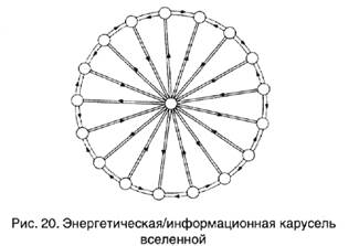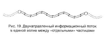 3. На основе экспериментов квантовая механика установила, что частицы, являясь точками на некой бесконечной волне, пребывают в постоянном общении друг с другом. То есть, если сделать что-либо с частицей 1 в Цинциннати, штат Огайо, планета Земля, сообщение об этом событии немедленно, со скоростью большей, чем скорость света, будет передано частице 2 на планете Дзета Ретикули. (Было бы слишком невежливо интересоваться тем, как это ученым удается исследовать атомы из другой галактики; вероятно, подразумевается, что если что-то происходит в локальных масштабах, то же самое происходит и в масштабах вселенной.) Отсюда следует, что все, что испытывает одна частица, одновременно может испытывать и другая, а возможно, и все частицы повсюду. Это объясняется тем, что все они—части одной волны, одного и того же энергетического потока. Как у определенного вида, чтобы вид развивался как единое целое, знания/память/опыт передаются из поколения в поколение, вероятно, через ДНК (а не просто во времени и пространстве, вспомните наш сценарий о обезьяне и картошке), точно так же информация, по всей видимости, свободно распределяется между миллиардами и миллиардами частиц, из которых состоит физическая вселенная. Это взаимодействие на самом широком уровне.