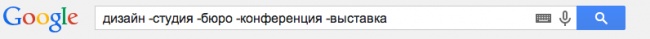 Допустим вы хотите найти статьи о дизайне, но получаете только сайты дизайн бюро, конференций и выставок. Можно исключить эти слова из поиска, поставив перед ними минус.