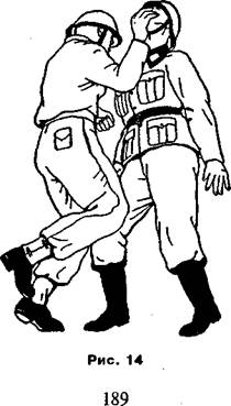 Примечание. Этот удар часто используется для того, чтобы противник переместил свой подбородок в позицию, более удобную позицию для нанесения ему удара в подбородок (рис. 14).