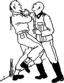 Если противник произвел захват, как показано на рисунке 19 (большие пальцы его рук находятся снизу), возьмитесь правой рукой за левую руку снизу, как показано на рисунке 20, и резко потяните по направлению к своему туловищу.