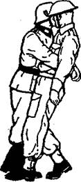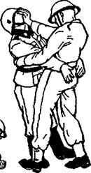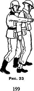1. Схватите противника за поясницу левой рукой и нанесите ему удар в подбородок, как показано на рисунке 32.