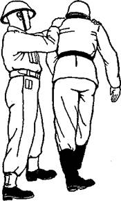 Примечание. Хотя последняя позиция и метод удушения аналогичны приему 14, эти приемы различаются силой давления, необходимого для удушения противника. Если ноги противника перекрестились (а так происходит практически всегда-, когда человека неожиданно разворачивают вокруг своей оси), то требуется применить в два раза меньшее усилие.