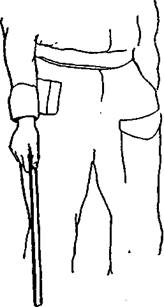 Примечание. Причина использования именно такого захвата палки очевидна. Противник вряд ли заподозрит, что ему угрожает опасность нападения.