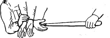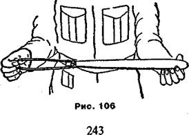 Этот метод, с помощью которого один человек может эффективно контролировать несколько пленников, может оказаться очень полезным. Полицейская дубинка, полицейский жезл или охотничий хлыст, оснащенные петлей для захвата, как показано на рис. 106 — это все, что требуется в данном случае.