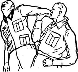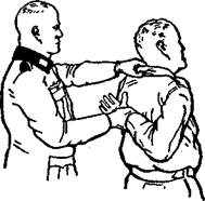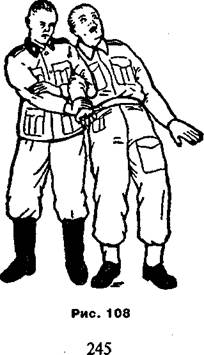 Ниже на рисунках представлены два широко распространенных захвата, которые относятся к этому типу захватов: рис. 108 — полицейский захват за руку, и рис. 109 — захват за воротник и запястье.