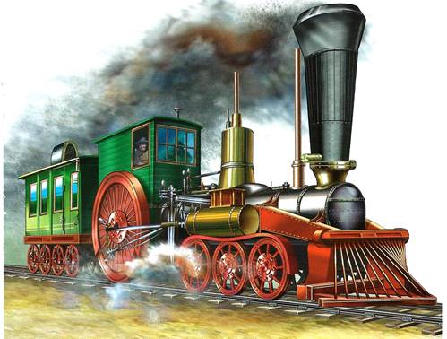 Паровозы. Для передвижения грузов нужна сила. Ею могут являться: возможности человека, животного и т.п. Вначале для перемещения грузов по рельсам вместо человека стали использовать лошадей. Конная тяга обходилась недешево, да и хлопот они доставляли немало. Их замена нашлась в изобретении паровой машины Томасом Ньюкоменом в 1712 году. Ее усовершенствованные варианты использовались впоследствии Джеймсом Уаттом, Николаем Жозеф Кюнье, Уильямом Мердоком и др. до тех пор, пока в 1803 году Ричард Тревитик не изобрел на ее основе первый в мире паровоз (рис.2.5). Паровоз стал паровозом благодаря Джорджу Стефенсону и постройке рельсовой дороги для вывозки угля в порт Стоктона из Дарлингтона; эта дорога была открыта 27 сентября 1825 года (рис.2.6). Она вызвала в мире настоящую железнодорожную лихорадку. Железные дороги начали возводить во всем мире. Хронология появления железных дорог в странах мира приведена в [2.3]. В это же время бурно развивалась и паровозостроительная промышленность; изменялись и хорошели паровозы. Они олицетворяли собой железнодорожный транспорт и на долгое время внешний облик паровоза стал брендом (англ. brand, фабричное клеймо – марка, отличительный знак товара) железных дорог (рис.2.7, 2.8).