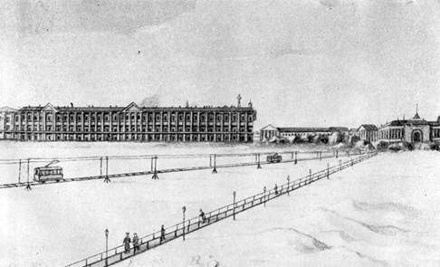 Рис. 2.17. Трамвайный перевоз в Петербурге по льду через Неву