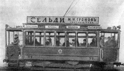 В 1874-1876 годах инженер Ф. А. Пироцкий провел ряд опытов по передаче электроэнергии по рельсам. Для этой цели он использовал заброшенный участок Сестрорецкой железной дороги, один из рельсов которой у него являлся прямым проводом, а другой - обратным. Опыты закончились успешно, и в 1876 году Ф.А.Пироцкий установил электрический двигатель на один из вагонов Петербургской конно-железной дороги. После серии проведенных испытаний, 22 августа 1880 года в 12 часов дня в Петербурге, на Песках, на углу Болотной улицы и Дегтярного переулка в первый раз в России была проверена возможность движения трамвайного вагона "электрическою силою, идущей по рельсам, по которым катятся колеса вагона" [2.36].