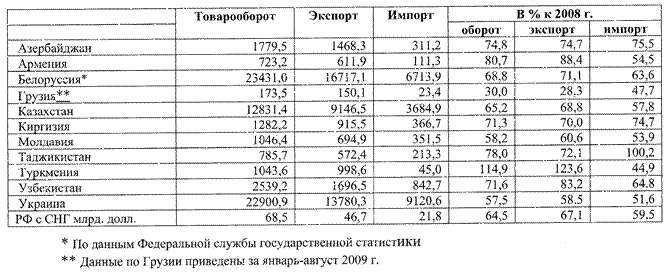За 2009 год товарооборот России со странами СНГ составил 68,5 млрд. долл.