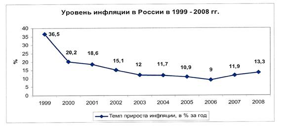 5. Высокая, в сравнении с развитыми странами, инфляция. В России инфляция, накануне кризиса, достигала 13%, против 1-3% в развитых странах (рис. 4.19). Не
