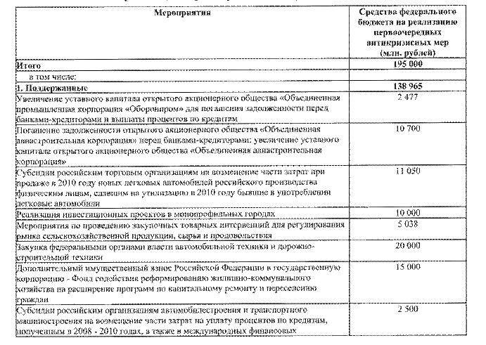 В июне 2009 года Правительством РФ была принята антикризисная программа (табл. 4.13).