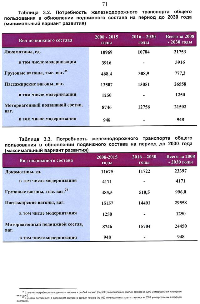 Согласно «Стратегии …» до 2030 года будет организовано производство подвижного состава нового поколения (табл. 3.2 и 3.3 «Стратегии…».