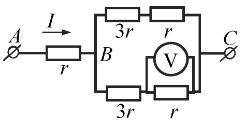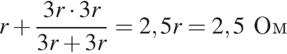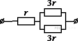 Участок представляет собой последовательное соединение резистора r и двух параллельно соединенных резисторов 3 r. Следовательно, сопротивление этого участка равно