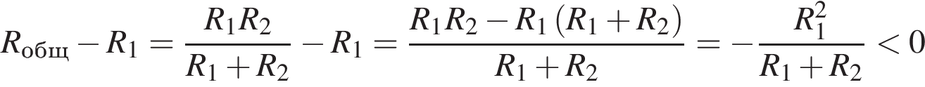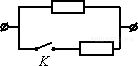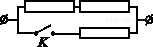 При замыкании ключа два резистора окажутся подключенными параллельно. При параллельном соединении двух резисторов общее сопротивлении всегда меньше, чем сопротивление любого из них. Проверим это, например для сопротивления