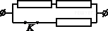 Если разомкнуть ключ, «вертикальные» сопротивления перестанут быть закороченным и схема станет представлять собой последовательно соединение резистора R с двумя параллельно соединенными резисторами R. Следовательно сопротивление участка цепи после размыкания ключа будет равно: