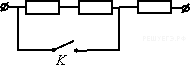 На рисунке изображена схема электрической цепи. Что произойдет с общим сопротивлением цепи при замыкании ключа К? Сопротивление цепи