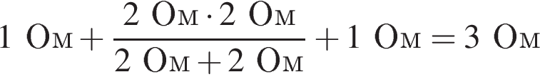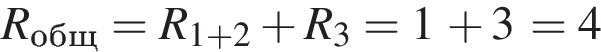 Таким образом, мы переходим к более простой схеме, ее общее сопротивление можно легко посчитать, используя правила для последовательного и параллельного подключения проводников: