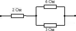 Участок цепи представляет собой два последовательно соединенных резистора, к которым параллельно подсоединен еще один. Следовательно, сопротивление всего участка равно: