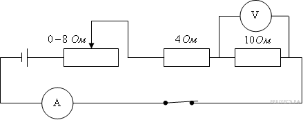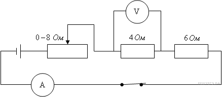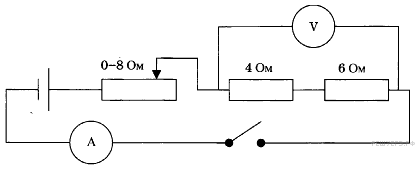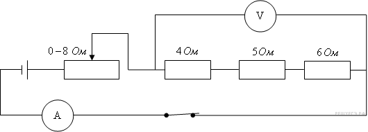 32. B 15 № 3471. На рисунке приведена электрическая цепь. Чему равна работа электрического тока за 5 мин протекания тока на участке цепи, к которому подключен вольтметр?