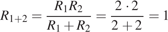 Электрическая цепь представляет собой последовательное соединение резистора 1 Ом с параллельно соединенными резисторами 2 Ом и еще одним резистором 1 Ом. Сопротивление такой схемы равно: