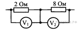 Показания вольтметра даны в вольтах.Чему будут равны показания вольтметра, если его подключить параллельно резистору 2 Ом? Вольтметр считать идеальным.