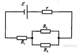 На рисунке показана схема электрической цепи. Через какой резистор течет наименьший ток?