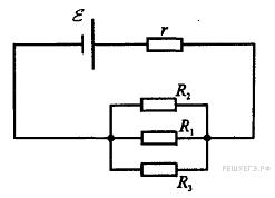На рисунке показана схема электрической цепи. Через какой резистор течет наибольший ток?