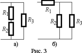 На рис. 3 а) ветви R1R2 и R3 соединены параллельно, но элементы R1R3 и R2R3 параллельного соединения не образуют, т.к. эти пары элементов не объединены двумя узлами. Очевидно, что для них не выполняется и условие равенства падений напряжения.