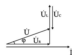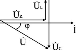 Для варианта XL < XC угол φ < 0, UL < UC. Ток опережает напряжение на угол φ. Цепь имеет активно-емкостный характер. Векторная диаграмма напряжений имеет вид (рис. 2.17).