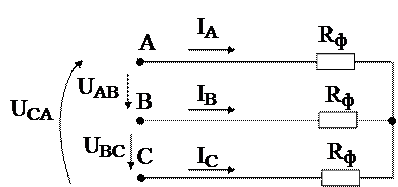 Rф = 0,85 (Ом), соединенных трехпроводной звездой. Определить выделяемую нагревателем мощность, если линейное напряжение сети