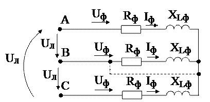 Рассмотрим симметричный режим работы трехфазной цепи. При соединении нагрузки по схеме «звезда» линейный ток равен фазному