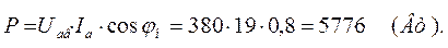 Потребляемая мощность определится как для последовательной цепи с напряжением Uав, током Iа (Iв) и cosφн: