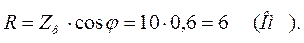 Из треугольника сопротивлений (рис.5.2.10.1) определим фазное активное сопротивление:
