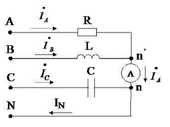 Цепь подключена к трехфазной сети с симметричной системой фазных напряжений. Определить показания амперметра, (рис.5.2.16) если