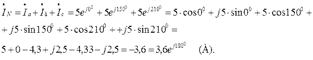 Из векторной диаграммы (рис.5.2.16.2) ток в нейтральном проводе определится как: