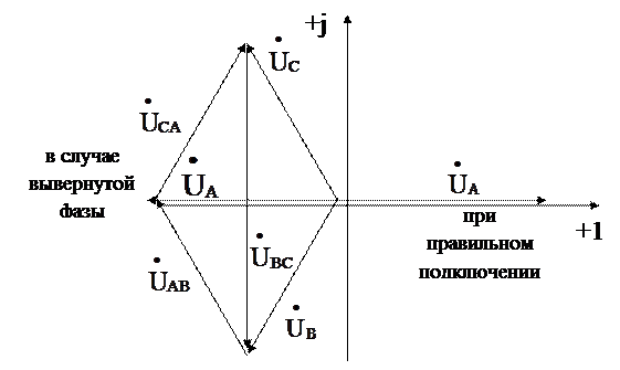 раз больше, чем фазные. В случае «вывернутой фазы» АХ из векторной диаграммы видно, что напряжение