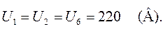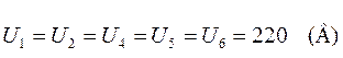 Из схемы заданной цепи видно, что вольтметры V1, V2, V6 подключены между началом и концом каждой фазы, т.е. измеряют фазные напряжения: