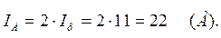 На рисунке показана трехпроводная цепь, состоящая из двух параллельных участков, каждый из которых представляет собой соединение звездой симметричных активных сопротивлений R с одинаковыми токами в каждой фазе. А так как сопротивления фаз чисто активные, токи в каждой фазе совпадают по направлению со «своим» фазным напряжением. Это означает, что вектор тока, например, в фазе «а» одной звезды будет совпадать по направлению с вектором тока этой же фазы другой звезды. В таком случае амперметр покажет удвоенное значение фазного тока какой-либо звезды. Фазный ток звезды: