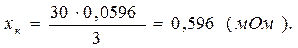 где x0 – индуктивное сопротивление кабеля, мОм.