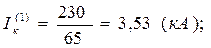 | Трёхфазное К.З. | Iк, кА | 3,45 | 7,05 | 38,5 | 12,5 | ||