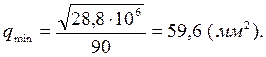 Минимальное термически стойкое сечение вычислено по формуле (52):
