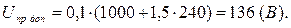 Зная наибольшее допустимое напряжение прикосновения, определяем напряжение на заземлителе: