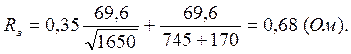S – площадь заземляющего устройства, принята равной 1650 м2 при размере ТП