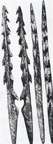 Появились новые орудия: иглы с ушками, крючки для ловли рыбы, гарпуны и копьеметалки (рис. 2.22.). Эти простые орудия в огромной степени усилили власть человека над природой. Выделено несколько основных культур позднего палеолита. Для перигорской культуры возрастом примерно 35-32 тысячи лет назад характерны скребла, пилы и ножи с округлой тыльной стороной, которые, возможно, берут начало еще в мустьерских традициях.