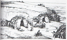 В строительстве кроманьонцы, следовали старым традициям неандертальцев. Они жили в пещерах, строили шатры из шкур, складывали жилища из камней или вырывали в земле. Новыми стали легкие летние шалаши, которые строили кочующие охотники (рис. 2.23., рис. 2.24.).