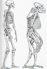 - строение длинных костей ног - у прямоходящих ноги длинные, коленный и голеностопный суставы имеют характерное строение. Такое строение известно, начиная с 6 млн. лет назад. У четвероногих приматов руки длиннее ног.