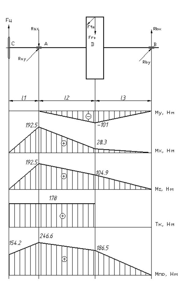 Определяют диаметр вала и опасном сечении по четвертой теории прочности