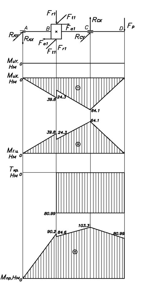 Рис 1.4 Эпюры моментов быстроходного вала
