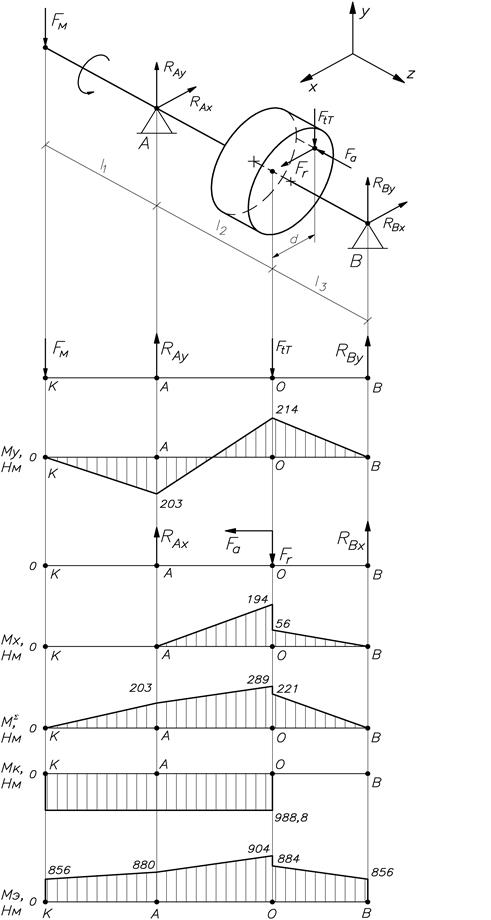 Рис. 1.9. Эпюры моментов тихоходного вала.