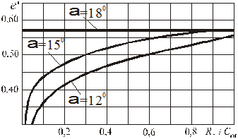 В этих подшипниках действительный угол контакта отличается от начального и зависит от Rr, Ra, и Cor. Поэтому коэффициент е′ принимают по графику (рис.2.2.) в зависимости от отношения Rr/Cor [8, с.58, рис.42]